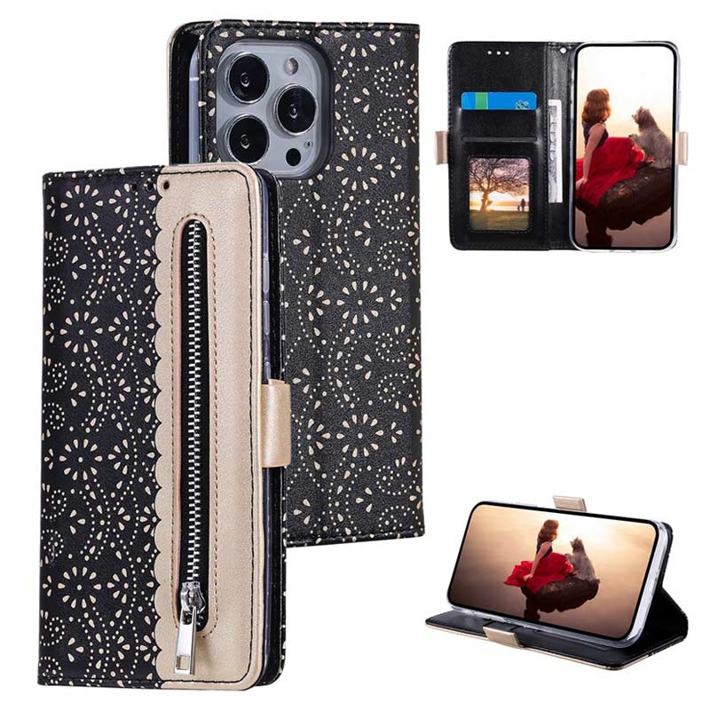 Această husă tip portofel incredibil de elegantă, cu model de dantelă, protejează iPhone 16 Pro Max de daune, iar buzunarul frontal cu fermoar vă permite să stocați bani și monede.
