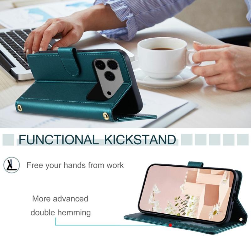 Protejați-vă telefonul iPhone 17 Pro cu această husă portofel luxoasă, matlasată. Fabricată din material TPU acoperit cu piele PU, această husă este rezistentă la zgârieturi și anti-amprente, menținând telefonul elegant și elegant. Linia de cusături formează un model de grilă în formă de romb, adăugând o notă modernă și frumoasă carcasei. Marginea ridicată a camerei și a ecranului oferă o protecție eficientă împotriva zgârieturilor, în timp ce decupajele precise oferă acces complet la toate butoanele, porturile și alte funcții. Designul portofel permite depozitarea ușoară a cardurilor și a banilor esențiali. Cu protecție suplimentară împotriva zgârieturilor, impactului, căzăturilor și deteriorării zilnice, această husă este dotată și cu o curea de umăr și o curea de încheietura mâinii pentru un confort sporit.