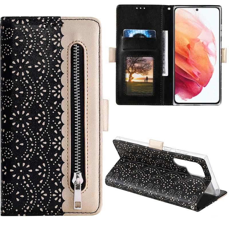 Păstrați în stare impecabilă superbul Samsung Galaxy S22 Ultra 5G cu această husă la modă cu model de dantelă. Pe lângă telefon, puteți stoca toate cardurile esențiale și banii într-un buzunar separat pentru bani.