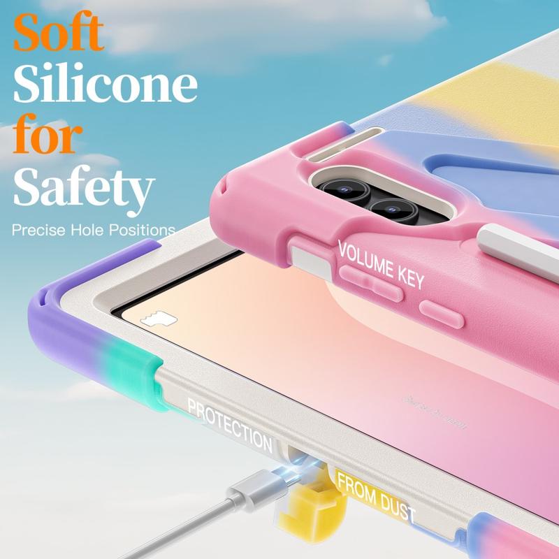 Protejați tableta Samsung Galaxy Tab S11 Ultra de daunele zilnice cu această fantastică husă Heavy Duty 360! Această husă la modă, cu căptușeală interioară antialunecare și suport rotativ integrat permite vizualizarea handsfree în mod peisaj sau portret. Cadrul și interiorul sunt realizate din plastic, iar suprafața exterioară din silicon moale. Această combinație oferă protecție excelentă împotriva căderilor sau a deteriorărilor. Cu un aspect modern și protectoare, această husă hibrid este perfectă pentru Samsung Galaxy Tab S11 Ultra.