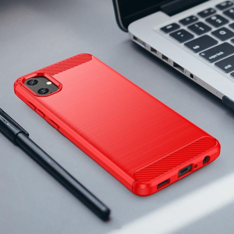 Această husă din TPU periat protejează în mod adecvat telefonul Samsung Galaxy A05, oferindu-i în același timp un aspect grozav datorită modelului din fibră de carbon de pe spate. Husa asigură răcirea atunci când utilizați telefonul Samsung Galaxy A05, datorită designului de disipare a căldurii.