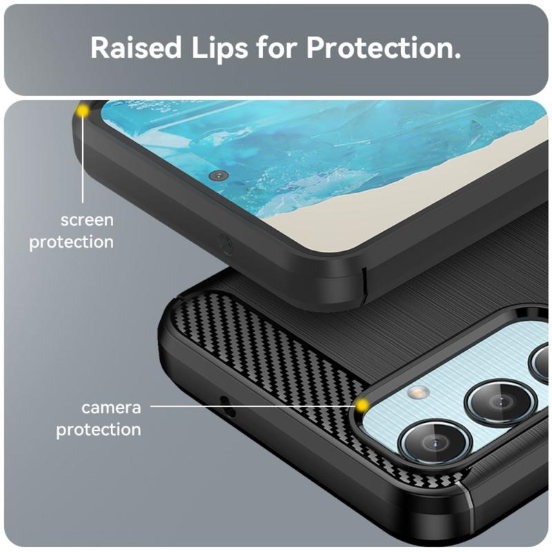 Această husă din TPU periat protejează în mod adecvat telefonul Samsung Galaxy M35, oferindu-i în același timp un aspect grozav datorită modelului din fibră de carbon de pe spate. Husa asigură răcirea atunci când utilizați telefonul Samsung Galaxy M35, datorită designului de disipare a căldurii.