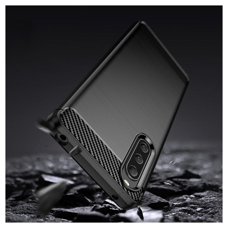 Husă TPU Periată Sony Xperia 10 V - Fibră de Carbon - Negru