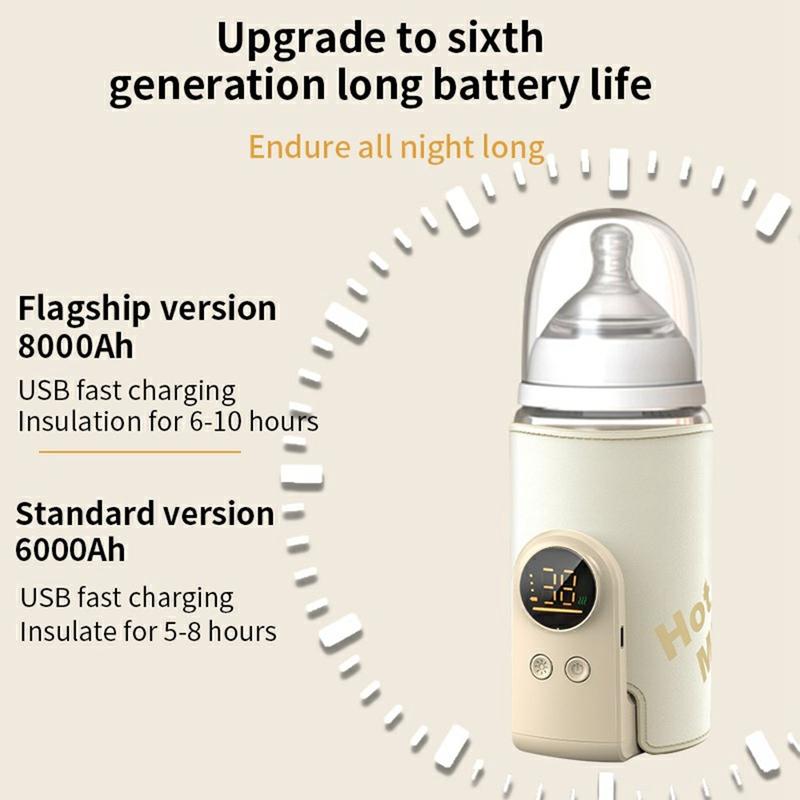 Echipat cu o baterie de litiu puternică de 8000mAh, încălzitorul oferă o funcționare wireless extinsă. Ideal pentru călătorii, hrăniri nocturne, plimbări în aer liber sau urgențe în care nu sunt disponibile prize.