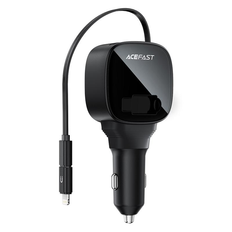 Încărcător auto rapid Acefast B17 95W - USB-C/USB-A cu afișaj LED și cablu retractabil