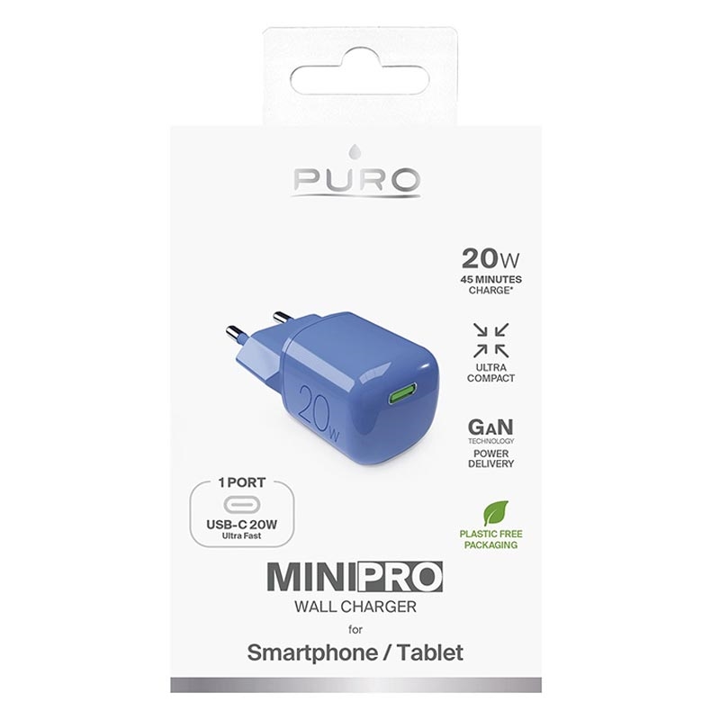 Încărcător de perete Puro Minipro GaN USB-C - 20W, Power Delivery