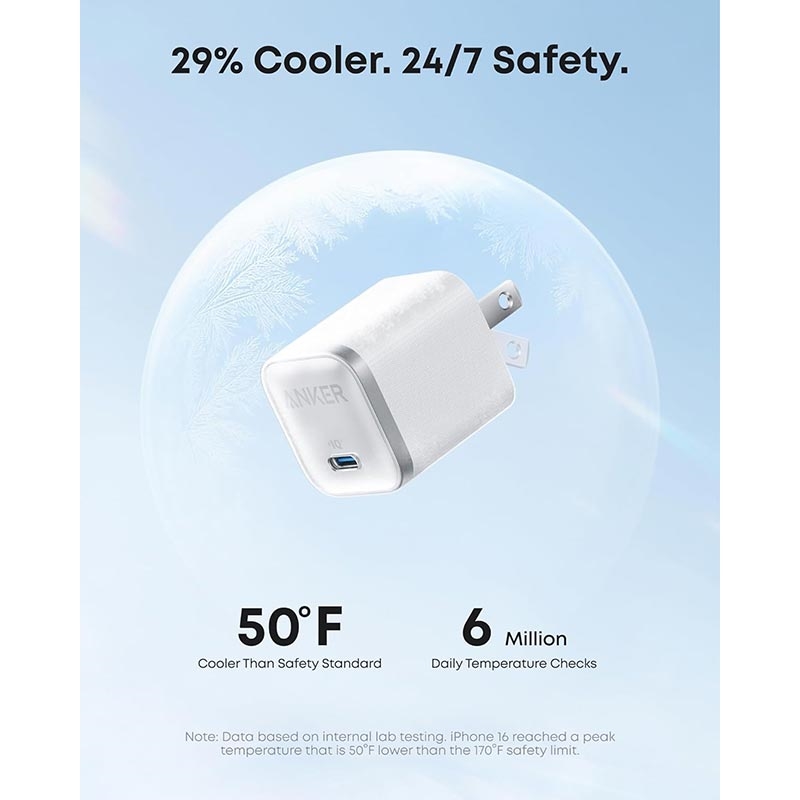 Anker Nano 45W este un încărcător de perete compact creat pentru încărcarea zilnică rapidă și sigură. Cu USB-C Power Delivery de până la 45W și suport PPS, acesta poate încărca orice, de la smartphone-uri și tablete la multe laptopuri USB-C care acceptă încărcare rapidă. Datorită tehnologiei GaN, acesta oferă o putere ridicată într-un corp mic, în timp ce ActiveShield 3.0 monitorizează frecvent temperatura pentru a preveni supraîncălzirea și a menține încărcarea stabilă. Rezultatul este un încărcător eficient, ușor de transportat și fiabil pentru utilizarea zilnică.