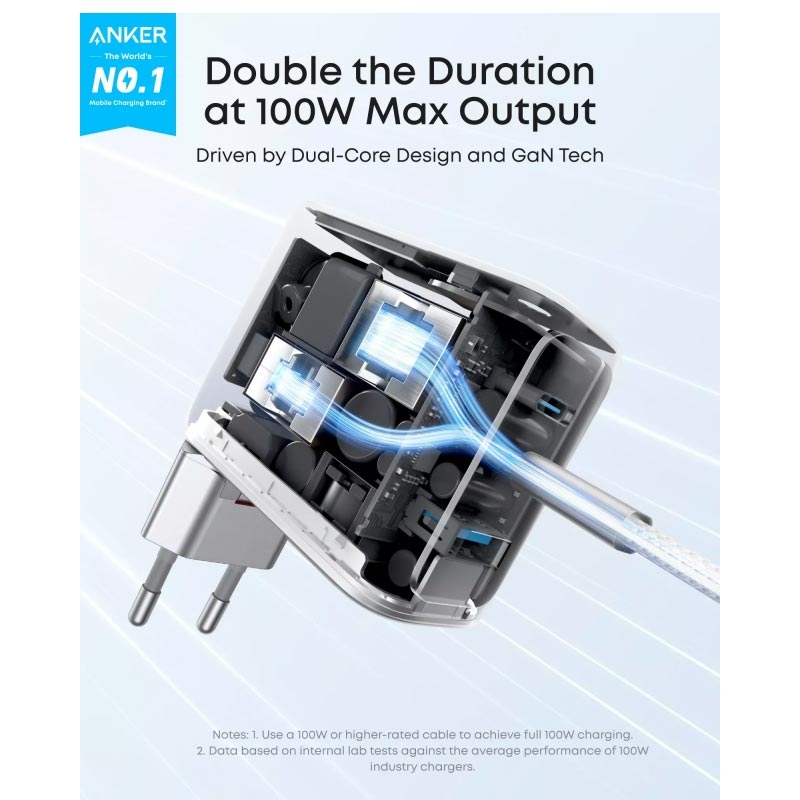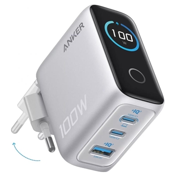 Încărcătorul de perete Anker de 100W cu tehnologie GaN și afișaj inteligent este o soluție de încărcare puternică și compactă, concepută pentru utilizatorii care au nevoie de o încărcare rapidă și eficientă a mai multor dispozitive simultan. Cu 2 porturi USB-C, 1 port USB-A, tehnologie avansată GaN și un afișaj digital integrat, acesta îți oferă o modalitate mai inteligentă și mai convenabilă de a alimenta laptopuri, smartphone-uri, tablete, căști și alte dispozitive de uz zilnic.
