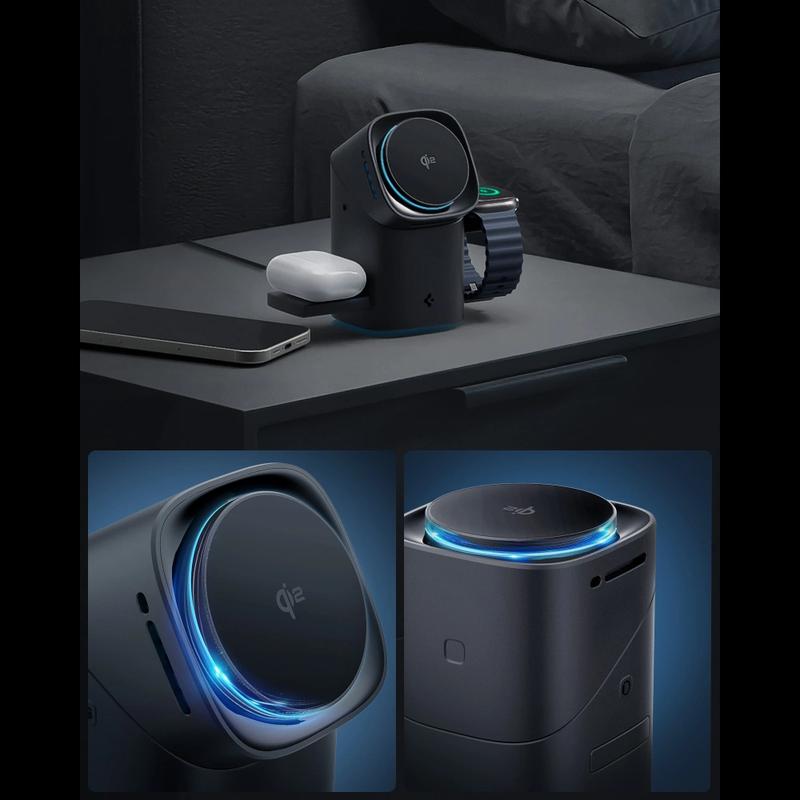 Spigen Essential EF223MS 3-in-1 Qi2 Încărcător wireless MagSafe - suport/încărcător rotativ pentru iPhone, AirPods și Apple Watch Charging Dock