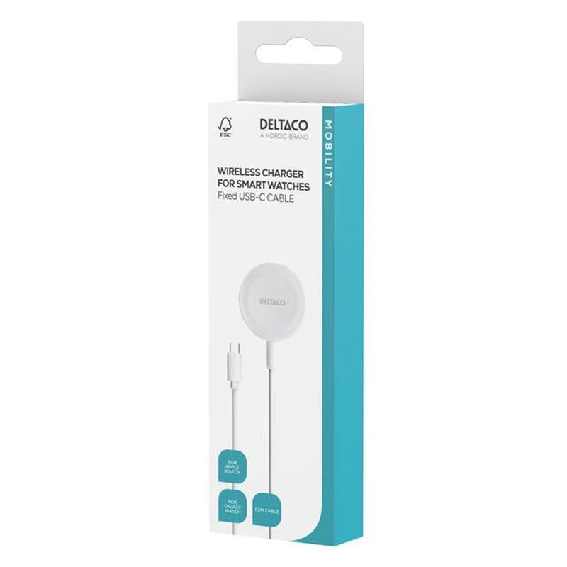 Încărcător magnetic fără fir Deltaco pentru Apple Watch/Galaxy Watch - cu cablu USB-C de 1 m