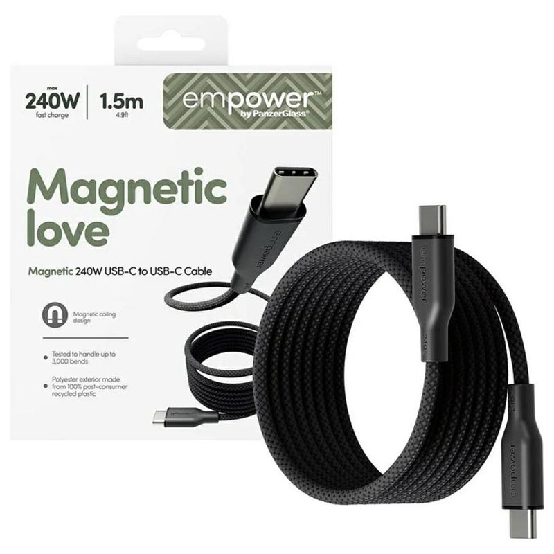 Încărcător magnetic USB-C Empower by PanzerGlass - încărcare rapidă de 240W, 1.5m