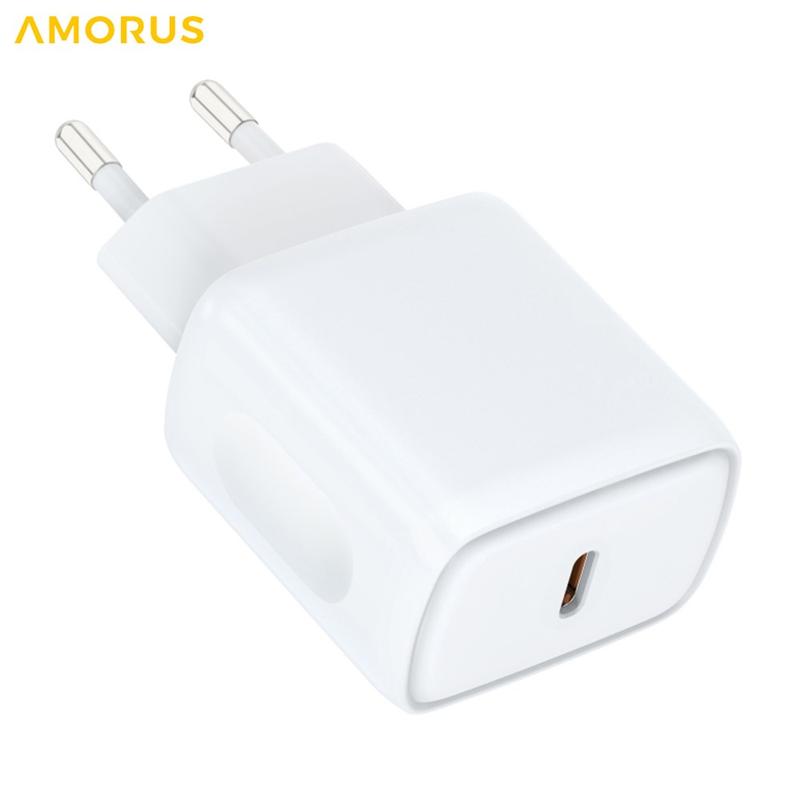 Încărcător de perete Amorus PD 20W USB-C cu încărcare rapidă – Adaptor de alimentare inteligent cu PPS, design rezistent la foc – Ștecher UE