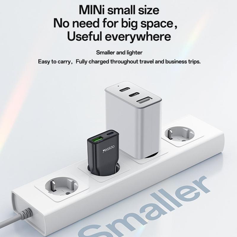 Încărcați mai inteligent și călătoriți cu bagaje mai ușoare cu încărcătorul de perete ultra-subțire Yesido YC112. Conceput pentru confortul de zi cu zi, acest adaptor compact cu două porturi combină un port USB-C și un port USB-A într-o carcasă subțire care se potrivește cu ușurință în genți, buzunare, sertare de birou și truse de călătorie. Este o soluție practică pentru utilizatorii care doresc un singur încărcător atât pentru dispozitivele USB-C mai noi, cât și pentru cablurile USB-A mai vechi, fără a fi nevoiți să transporte un adaptor voluminos.