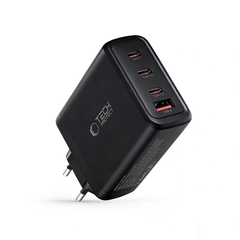 Încărcător Tech-Protect NC120W GaN cu 3 porturi USB-C, 1 port USB-A - încărcare rapidă de 120W