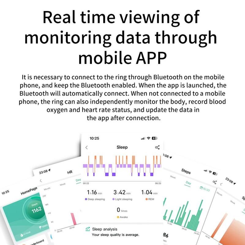 Inelul inteligent R99 este un dispozitiv portabil de sănătate de ultimă generație, conceput pentru a monitoriza perfect nivelul de fitness, wellness și activitate. Fabricat din oțel inoxidabil de înaltă calitate, acest inel inteligent rezistent la apă IP68 oferă monitorizare a ritmului cardiac, a oxigenului din sânge și a somnului, împreună cu controale bazate pe gesturi pentru fotografiere și navigare în aplicații. Se integrează fără efort cu Apple Health și WeChat Sports, devenind un companion de fitness puternic și elegant.