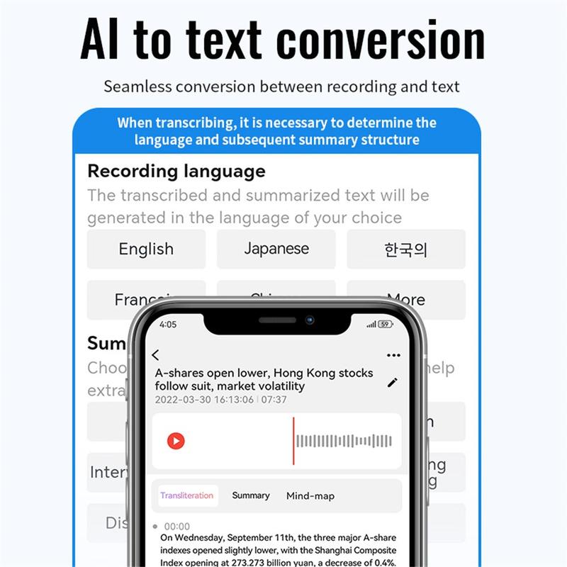 - Transcriere și traducere cu ajutorul AI: Se conectează prin Bluetooth la AIREC-APP pentru transcriere și traducere în timp real în 59 de limbi.
