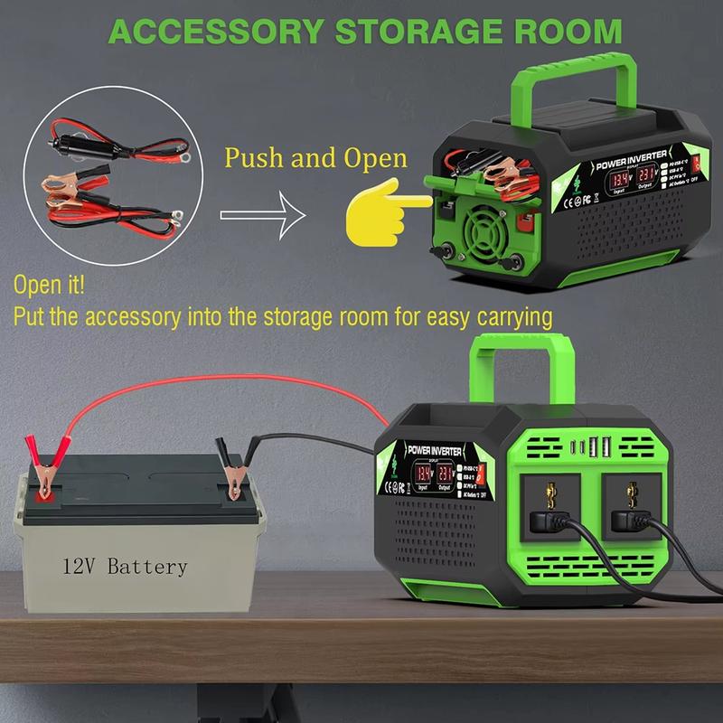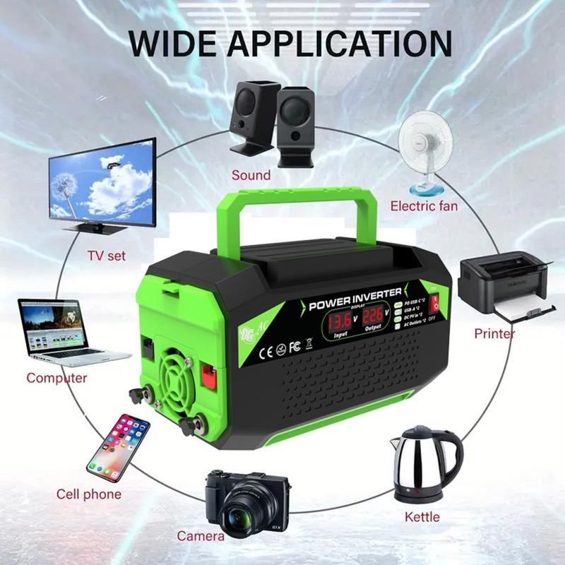 - Conversie eficientă de la DC la AC - Convertește puterea de 12V DC în 220V AC cu o ieșire continuă de 300W și putere de vârf de până la 600W, ideal pentru laptopuri, tablete, aparate CPAP, camere și alte dispozitive portabile.