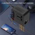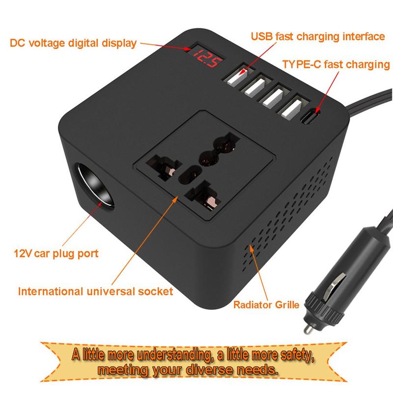 Invertor de alimentare auto cu afișaj digital - convertor de la 12V/24V DC la 110V/220V AC cu USB-C, USB-A și priză AC 150W