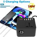 - Hub de încărcare multiport - Dispune de 1× USB-C PD (20W), 4× USB-A QC (20W fiecare) și 1× priză AC universală, permițând încărcarea simultană pentru telefoane, tablete, laptopuri și electronice mici.