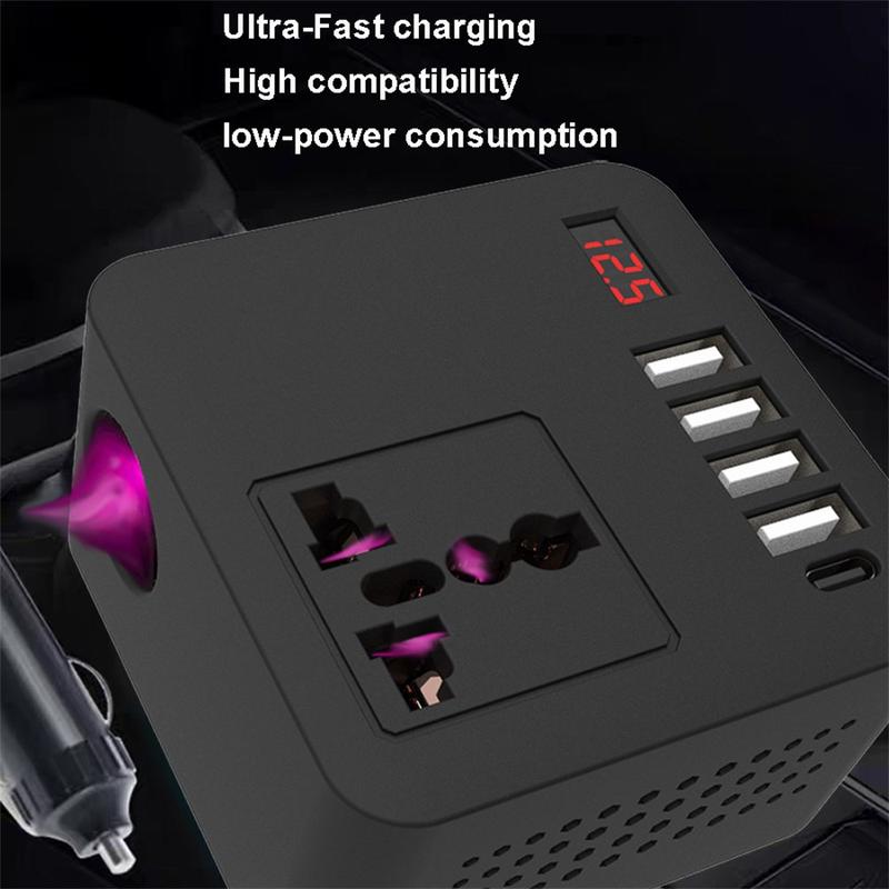 Alimentează-ți dispozitivele din mers cu Digital Display Car Power Inverter, un convertor compact, dar puternic, care transformă alimentarea de 12V sau 24V DC a vehiculului tău în 110V sau 220V AC. Proiectat cu mai multe porturi de încărcare rapidă, răcire inteligentă și protecție de siguranță completă, este perfect pentru călătorii, camping și utilizare în caz de urgență.