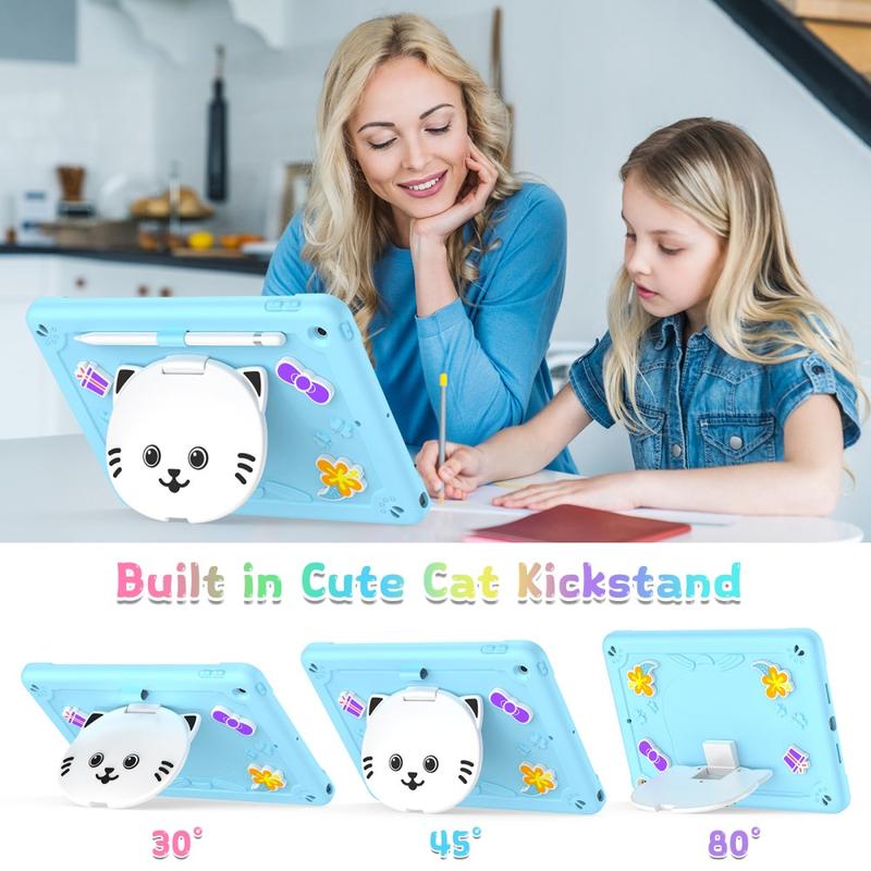 Perfect pentru copii, familii și utilizatori de iPad 10.2 2019/2020/2021 în mișcare, oferind protecție fiabilă cu o întorsătură distractivă și funcțională. Ideală pentru a studia, viziona, desena sau călători.