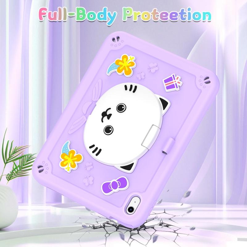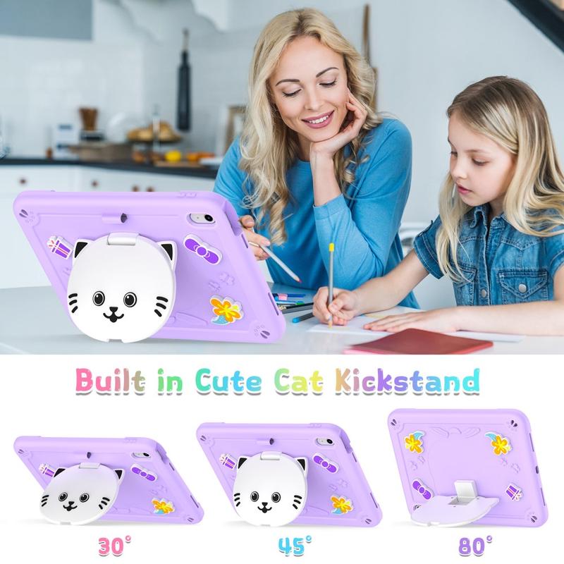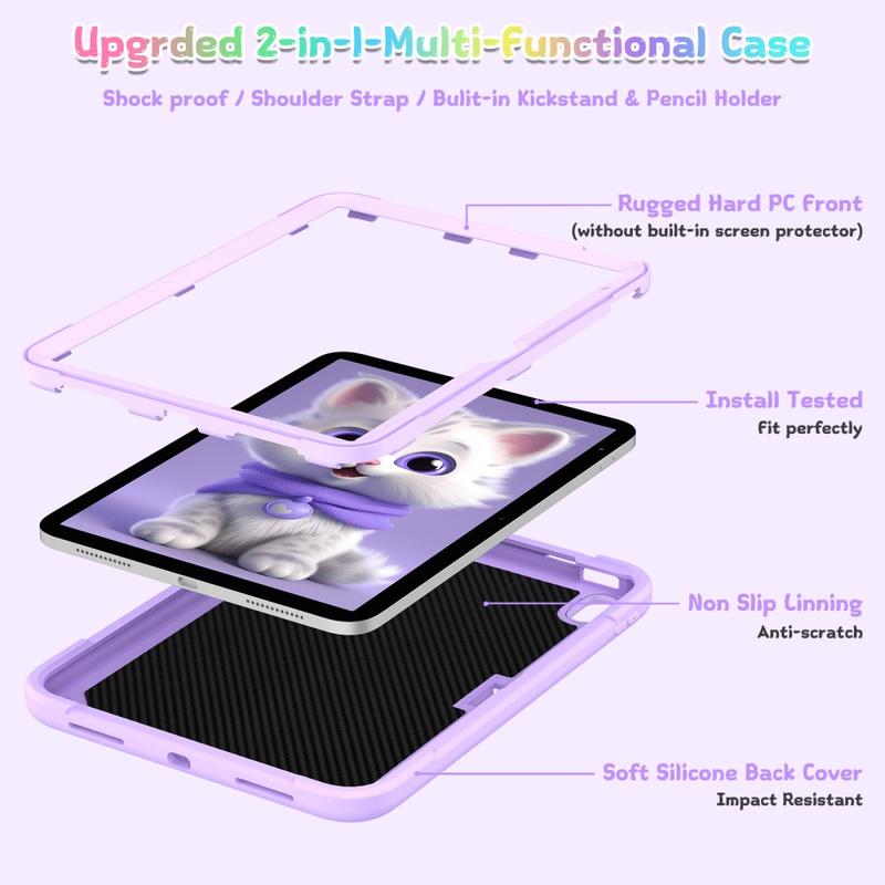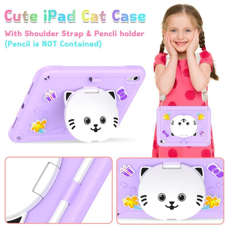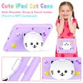 Husă hibridă drăguță cu pisică și suport, curea de umăr și suport pentru stylus pentru iPad (2022), iPad (2025)
