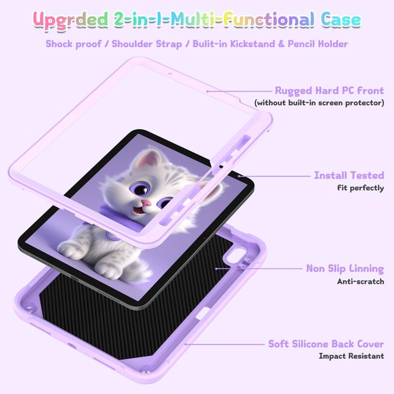 Husă hibridă drăguță cu pisică și suport, curea de umăr și suport pentru stylus pentru iPad Air 11 (2024), iPad Air 11 (2025)
