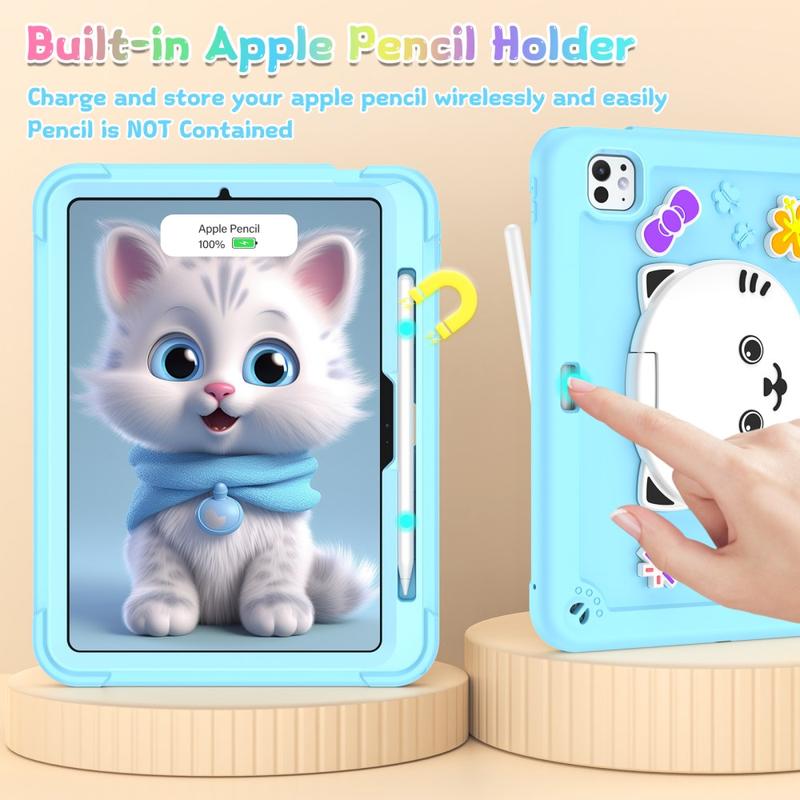 iPad Pro 11 2024/2025 Husă hibridă drăguță cu pisică și suport - albastru deschis