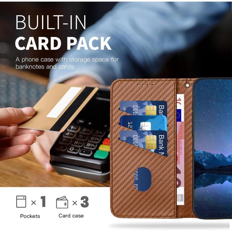 Această husă de portofel oferă un design elegant, protecție fiabilă și utilizare inteligentă. Finisajul texturat din fibră de carbon adaugă un aspect modern, profesional, în timp ce stratul interior TPU absoarbe șocurile de la căderile accidentale. Cu funcționalitate hands-free și o curea detașabilă, este construită pentru confort și versatilitate.