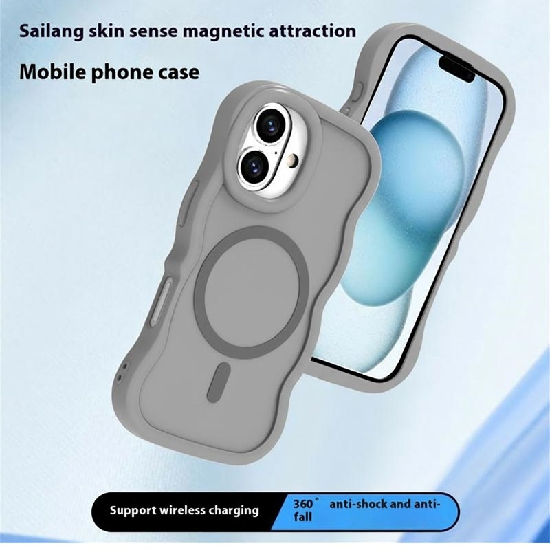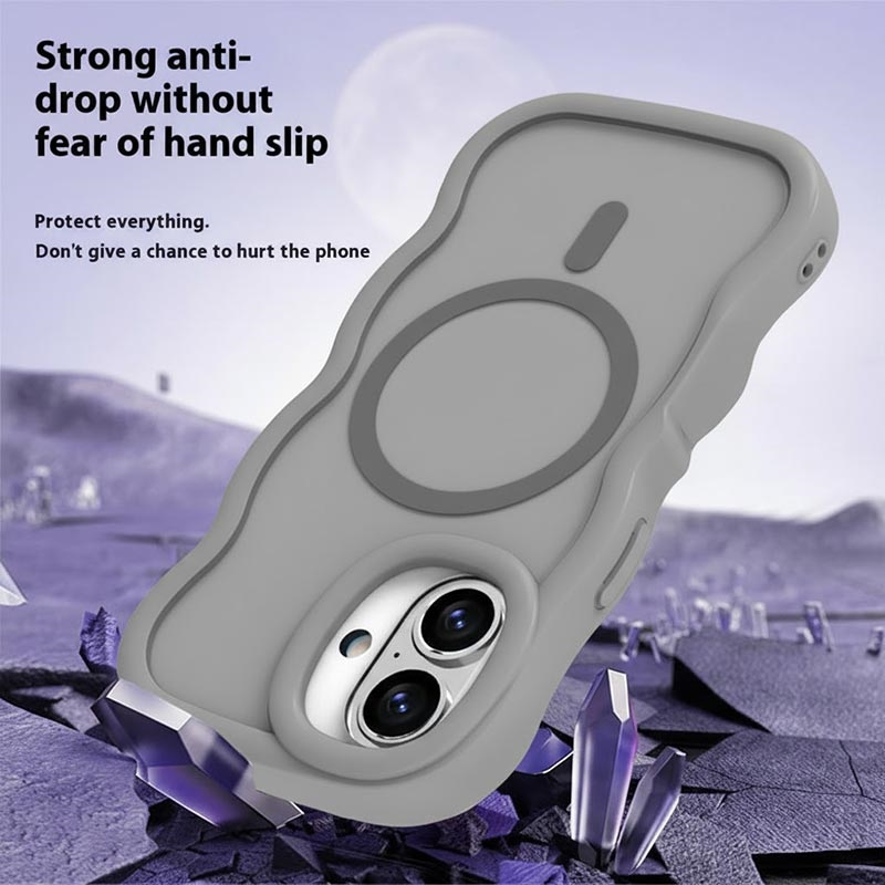 Protejați-vă iPhone 16 cu stil cu husa Wave Edge compatibilă cu MagSafe, un echilibru perfect între eleganță și funcționalitate. Realizată dintr-un hibrid de TPU moale și materiale PC durabile, această carcasă oferă protecție fiabilă împotriva căderilor, loviturilor și zgârieturilor, menținând în același timp un profil subțire și ușor. Designul modern cu textură ondulată îmbunătățește aderența și oferă telefonului dvs. o estetică unică, în timp ce finisajul neted skin-touch asigură o senzație luxoasă în mână.