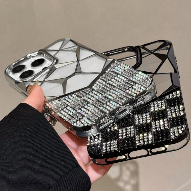 iPhone 16 Pro Max Geometric Diamond Model Case - Electroplated TPU Cover cu decor Rhinestone și protecție împotriva șocurilor