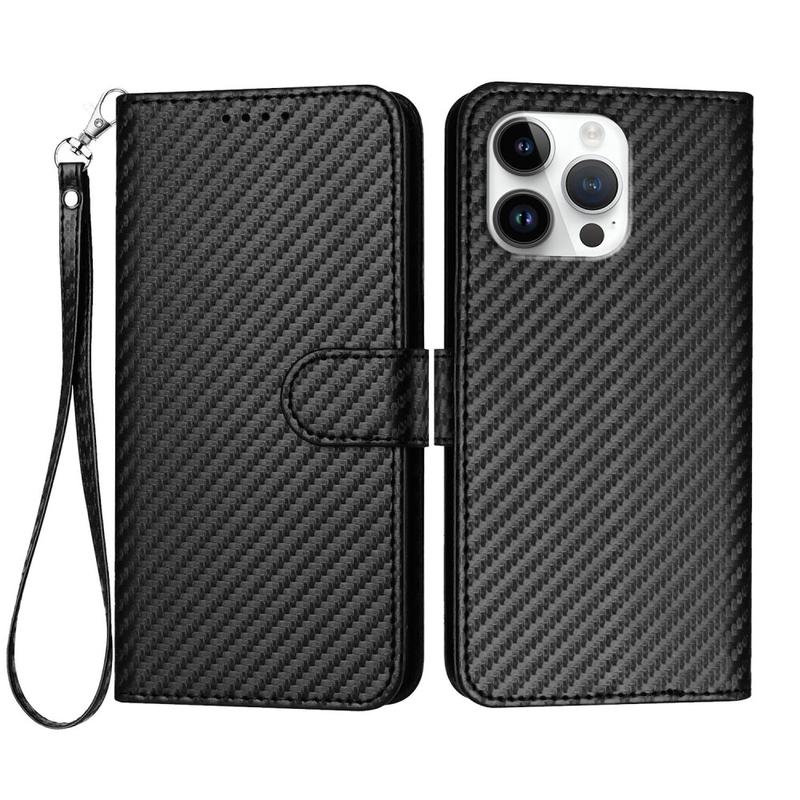 Husă portofel premium cu curea pentru iPhone 16 Pro Max - textură din fibră de carbon