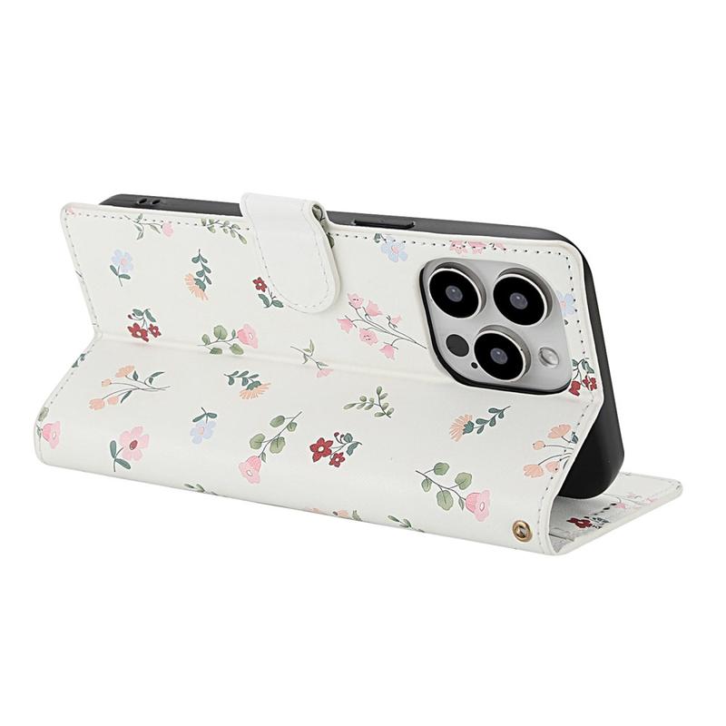 Husă portofel cu motive florale rombice pentru iPhone 16 Pro - cu curea și sloturi pentru carduri