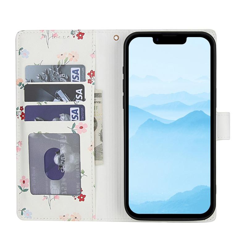 Husă portofel cu motive florale rombice pentru iPhone 16e, iPhone 17e - cu curea și sloturi pentru carduri