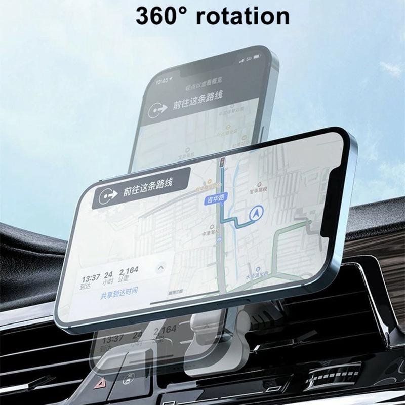 Conceput pentru confort, acest încărcător auto magnetic fără fir permite așezarea rapidă a telefonului și scoaterea ușoară ori de câte ori este nevoie. Alinierea magnetică puternică ajută la menținerea dispozitivului în poziție, în timp ce capul rotativ la 360 de grade simplifică reglarea unghiului de vizualizare pentru navigație, apeluri sau controlul muzicii. Montat direct pe gura de aerisire, acesta ajută la menținerea tabloului de bord ordonat și a telefonului la îndemână.