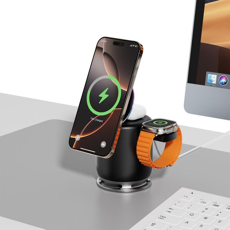 - Încărcare 3 în 1: 15W telefon + 2,5W ceas + 5W căști simultan