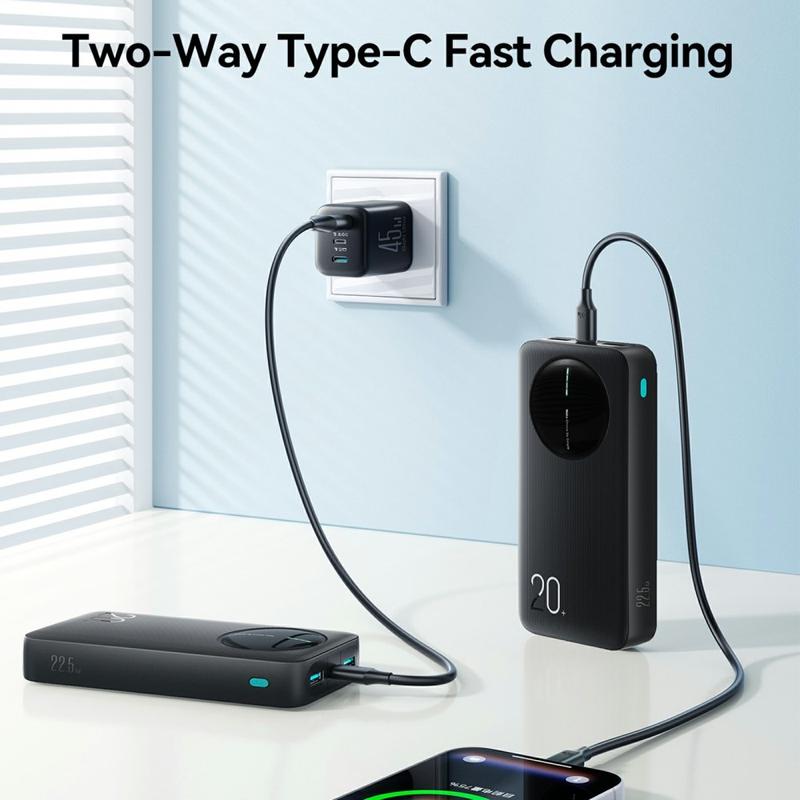 Banca de energie JOYROOM JR-PBF14 Pro este construită pentru zile aglomerate, călătorii și încărcarea mai multor dispozitive. Cu o capacitate mare de 20000mAh, vă oferă energie de rezervă fiabilă pentru smartphone-uri, tablete, căști și multe altele. Încărcarea rapidă de până la 22.5W ajută la reducerea timpului de așteptare, în timp ce trei porturi de ieșire vă permit să încărcați până la trei dispozitive simultan. Un indicator clar cu 4 LED-uri arată puterea rămasă dintr-o privire, astfel încât să știți întotdeauna când este timpul să reîncărcați.