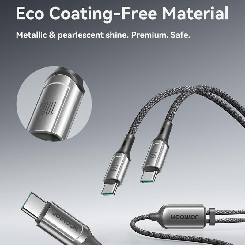 Joyroom S-A57 USB-C la cablu USB-C dublu - încărcare rapidă de 100W cu E-Marker, sincronizare de date de 480 Mbps, împletit din nailon, cablu de legare inclus