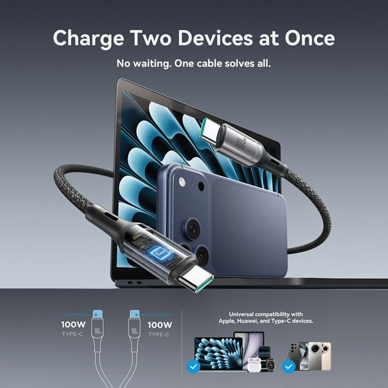 Dacă utilizați mai multe dispozitive USB-C, acest cablu reduce dezordinea și face încărcarea mai simplă. Obțineți suport de mare putere de 100 W, gestionare inteligentă a energiei și o construcție împletită rezistentă, proiectată pentru uzura zilnică reală - plus cravata organizatorică la îndemână pentru depozitare ușoară.