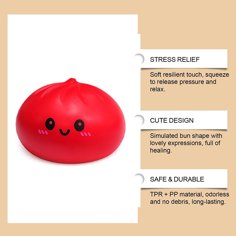 Jucărie antistres sub formă de chiflă roșie la abur - Jucărie moale și elastică din TPR, în stil kawaii, pentru acasă, birou și birou