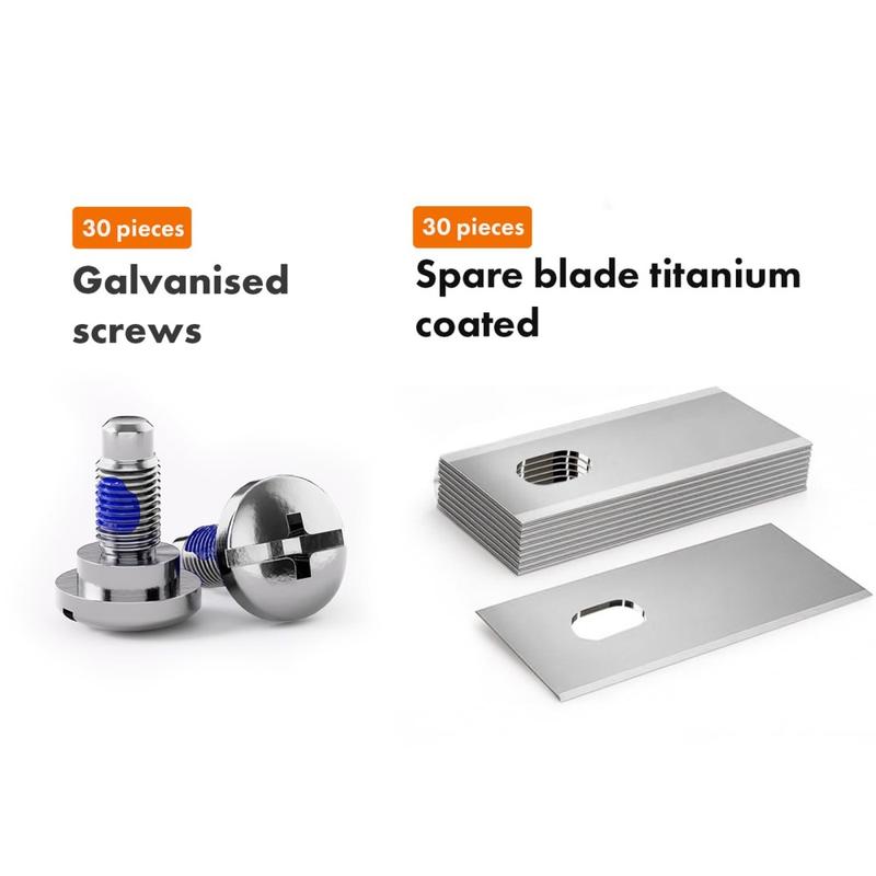 De asemenea, este o opțiune practică, deoarece setul include atât lame, cât și șuruburi, astfel încât aveți tot ce vă trebuie pentru întreținerea de rutină într-un singur pachet. Acoperirea cu titan și designul anticoroziv al șuruburilor adaugă un plus de valoare pentru utilizarea în aer liber pe durata sezonului de tuns iarba.