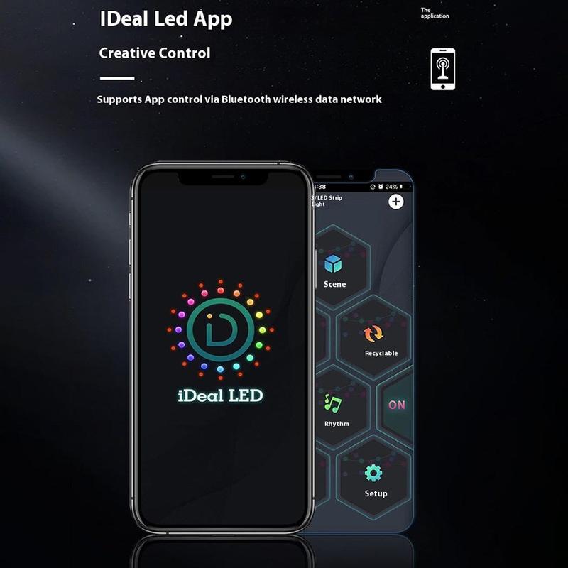 - Smart App Control - Conectați prin Bluetooth și utilizați aplicația iDeal LED pentru a personaliza culorile, luminozitatea, efectele și modelele direct de pe smartphone.
