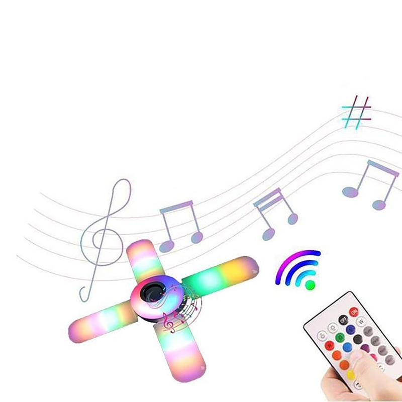 Lampă de plafon cu muzică Bluetooth E27 - 4 foi pliabile RGB cu schimbare de culoare și difuzor