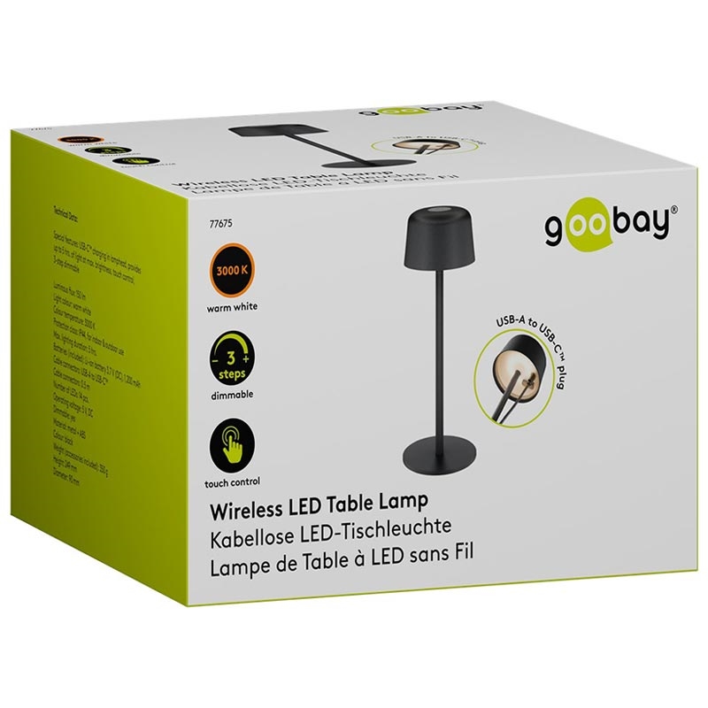 Lampa de masă LED fără fir Goobay - Dimensiune S (25 cm), control tactil, alb cald 3000 K, 150 lm, reîncărcabilă prin USB-C, IP44