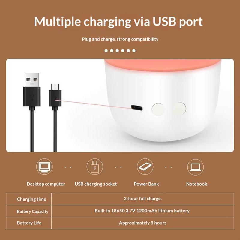 Cu o baterie reîncărcabilă încorporată de 1200 mAh, lampa poate fi utilizată fără fir și amplasată oriunde - ideală pentru noptiere, birouri, rafturi sau serile în aer liber. Oferă până la 8 ore de utilizare la o încărcare completă.