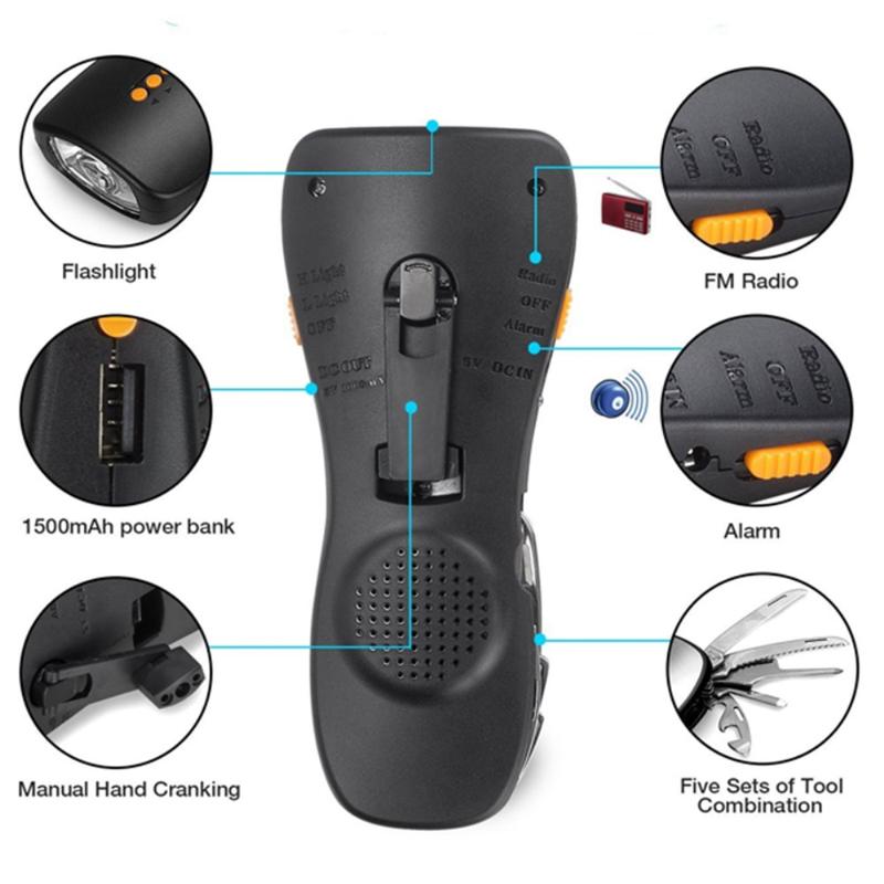 Lanternă multifuncțională cu manivelă de mână cu radio FM, set de instrumente de urgență din 5 piese