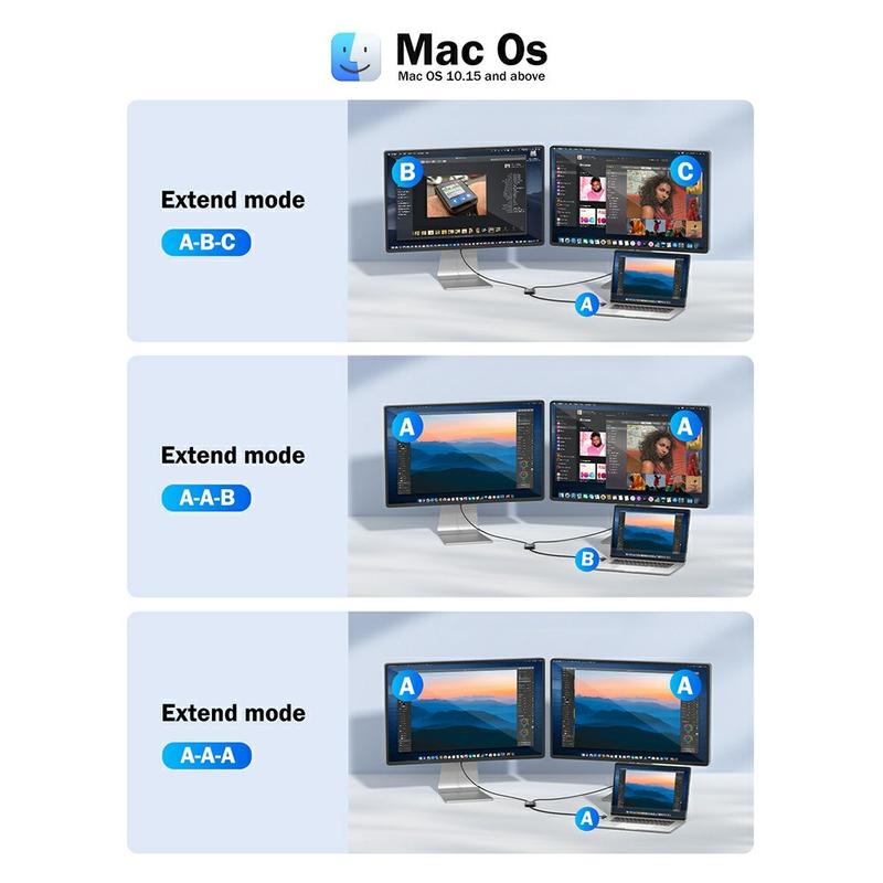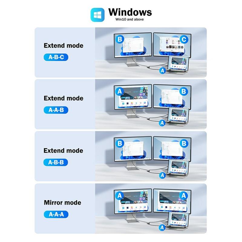 Adaptorul Lemorele HD10 de la USB/USB-C la HDMI dual este conceput pentru a extinde sau oglindi ecranul laptopului sau al desktopului pe două ecrane externe. Permițând configurații cu două monitoare, acesta îmbunătățește semnificativ productivitatea, multitasking-ul și eficiența fluxului de lucru pentru utilizarea profesională și de zi cu zi.