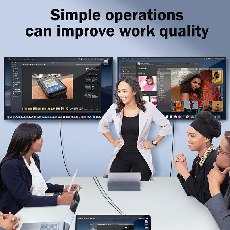 Compatibil cu dispozitivele dotate cu porturi USB-A sau USB-C, adaptorul funcționează perfect cu laptopuri, computere desktop și tablete compatibile. Se conectează cu ușurință la monitoare, televizoare și proiectoare, ceea ce îl face potrivit pentru birouri, săli de clasă și configurații de acasă.