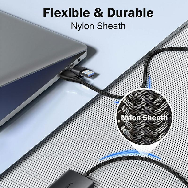 Adaptorul are un cablu împletit din nailon care rezistă la încurcare și tragere, îmbunătățind durabilitatea în timp. Corpul compact al adaptorului și lungimea cablului de 60 cm îl fac ușor de transportat într-o geantă de laptop sau într-un rucsac.