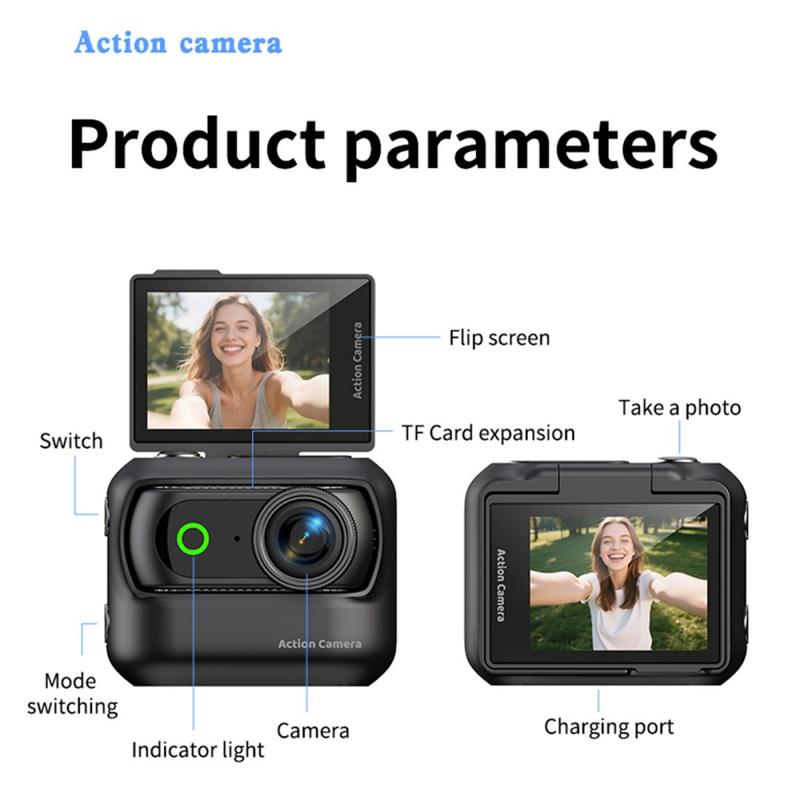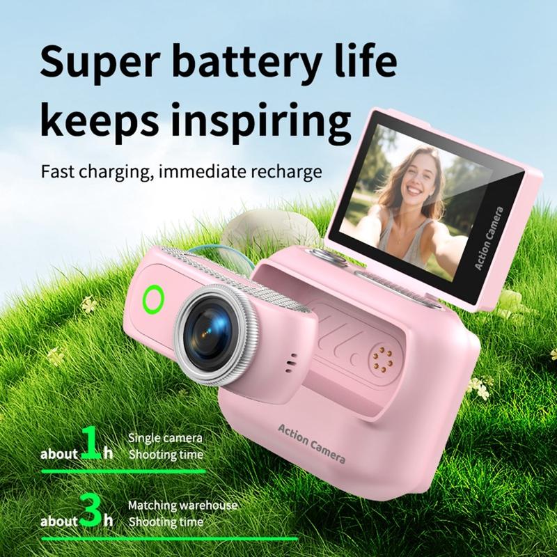 Concepută pentru flexibilitate, această mini-cameră sportivă suportă multiple moduri de filmare, inclusiv video, foto, mișcare lentă, time-lapse și efecte de oglindă ND, făcând-o potrivită atât pentru înregistrări ocazionale, cât și pentru conținut mai creativ. Designul său portabil vă permite să o montați pe un șnur de gât, pălărie, cască, ghidonul bicicletei sau alte suprafețe compatibile, în timp ce suportul pentru baterie extinsă vă ajută să filmați mai mult timp când sunteți în mișcare.